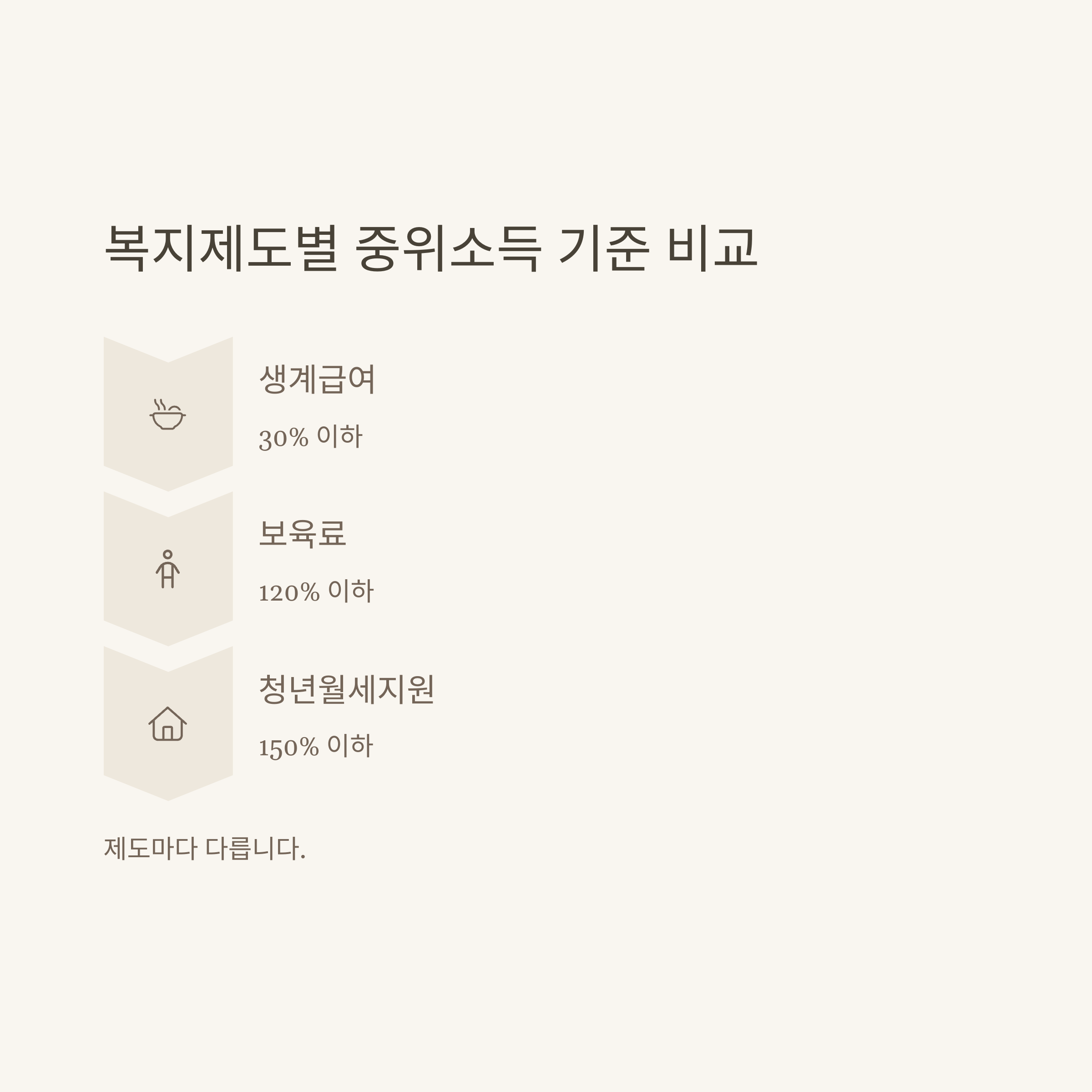 중위소득 비교: 기초생활·주택·보육지원 기준