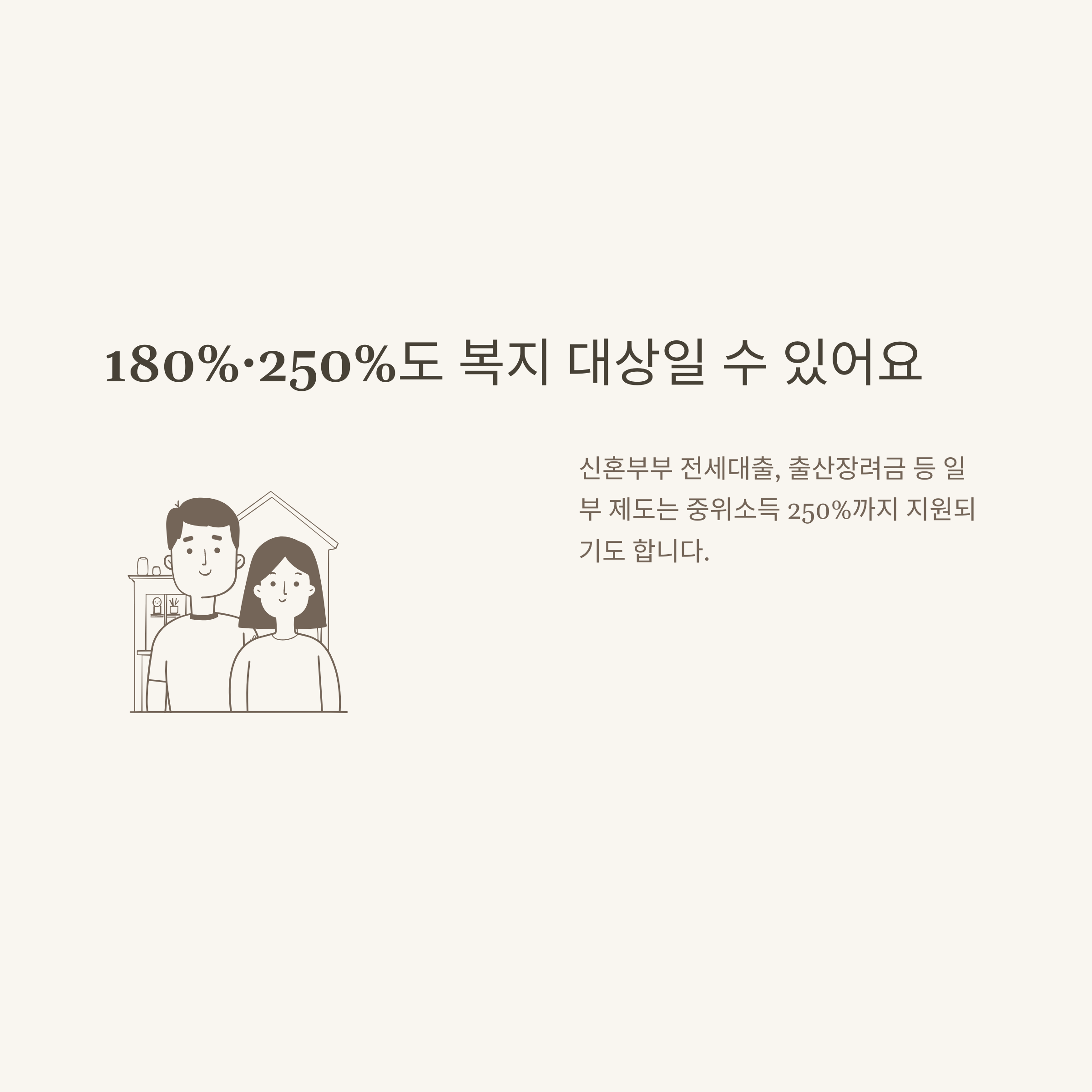 중위소득 180%, 250% 기준 및 지원 대상 분석