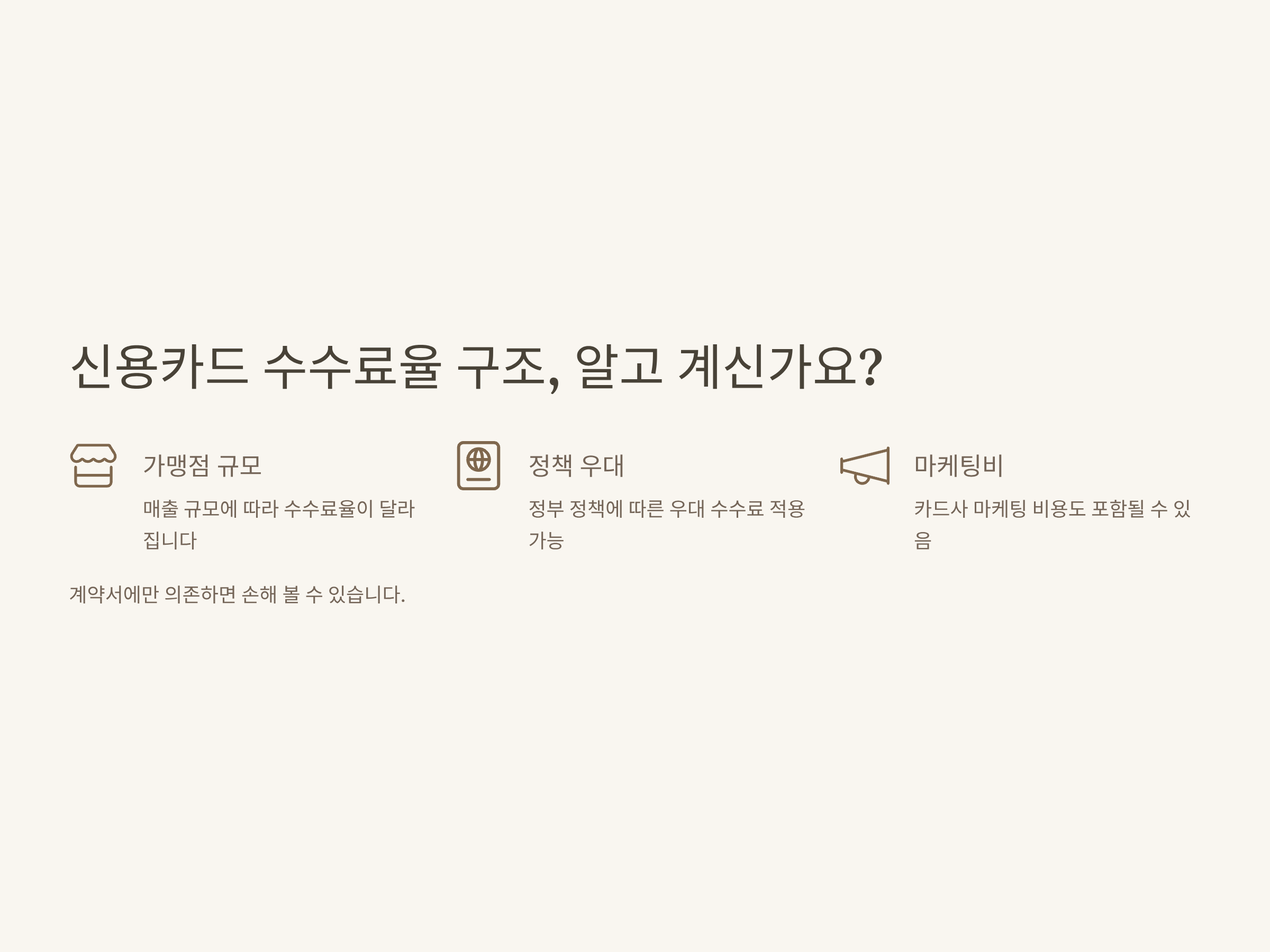 - 마케팅 비용 포함 여부: 일부 대형 가맹점은 카드사 마케팅비도 수수료에 반영
