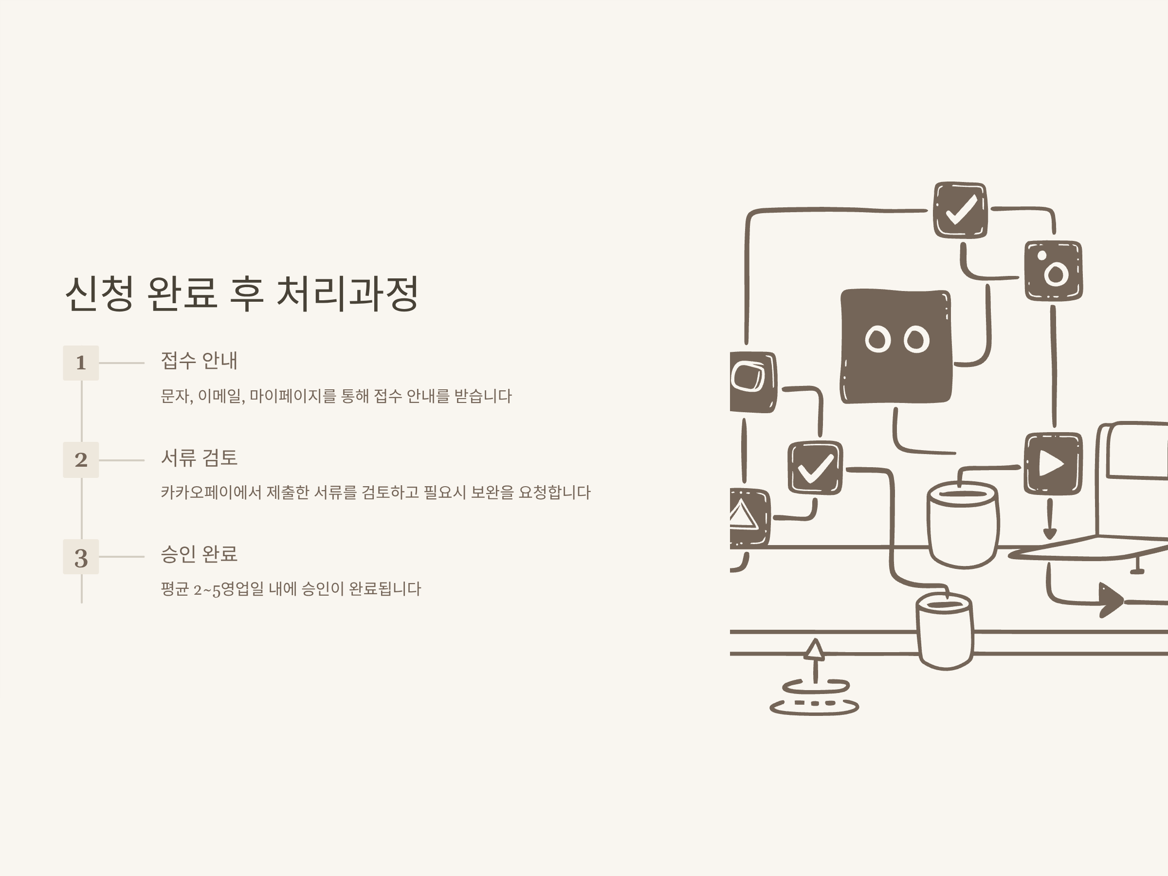 신청을 완료하고 나면 카카오페이 쪽에서 서류 검토와 확인 절차를 거칩니다. 저의 경우 평균적으로 2~5영업일 정도면 승인 결과를 문자 또는 이메일로 안내받을 수 있었습니다. 만약 추가 서류나 보완이 필요한 경우, 담당자가 직접 연락을 주기 때문에 진행 상황을 꼭 확인하셔야 합니다.