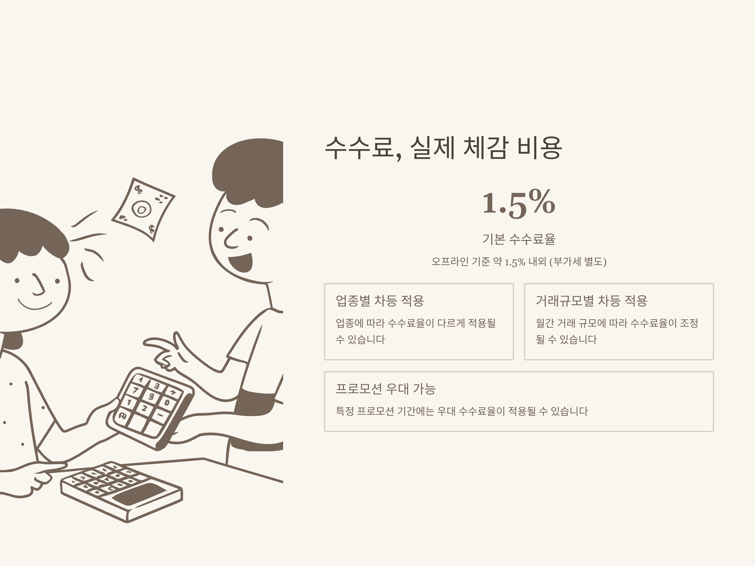 | 수수료율 | 오프라인 약 1.5% (업종별 차등) |