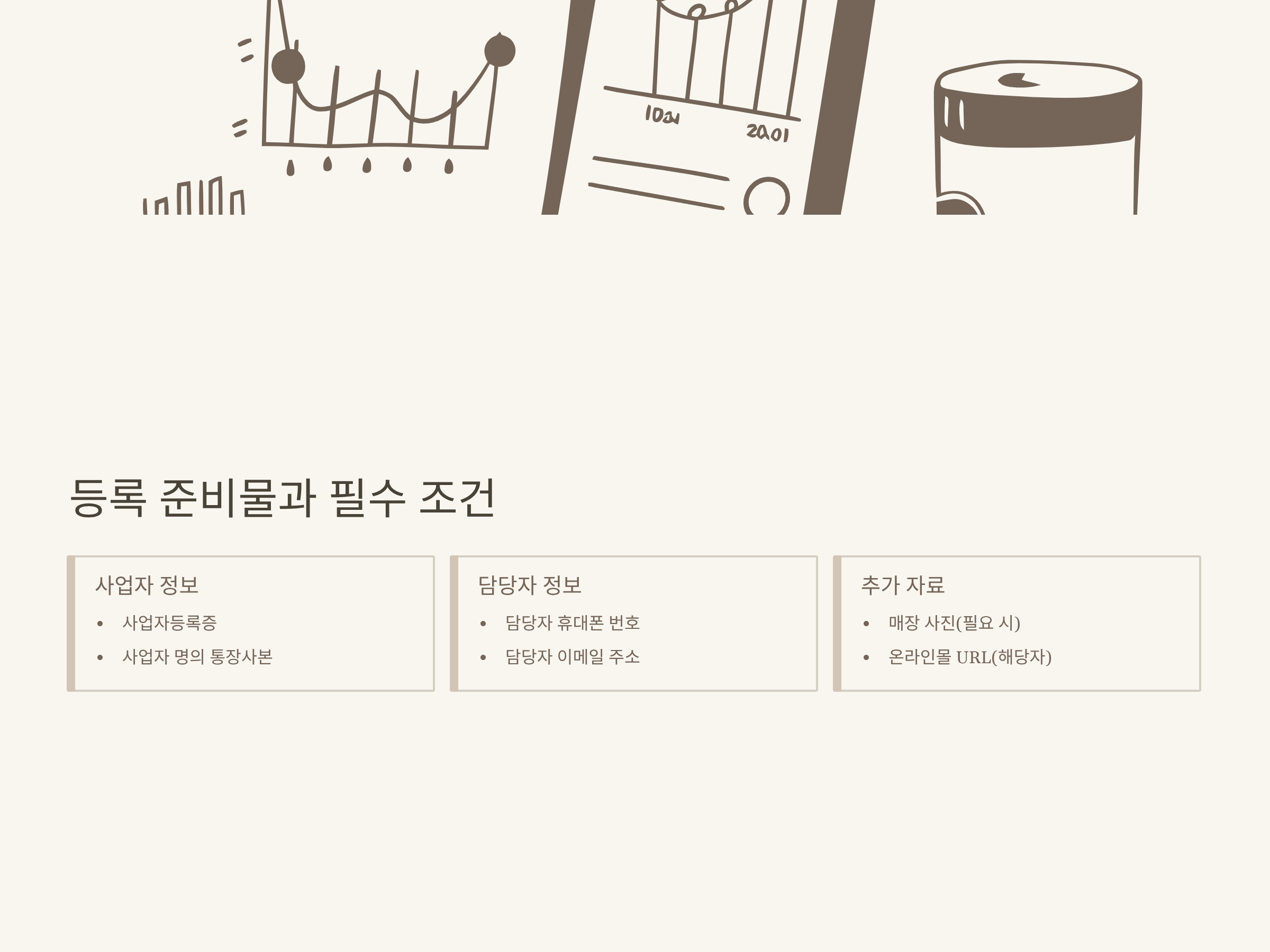 | 필수서류 | 사업자등록증, 통장사본, 담당자 연락처 |
