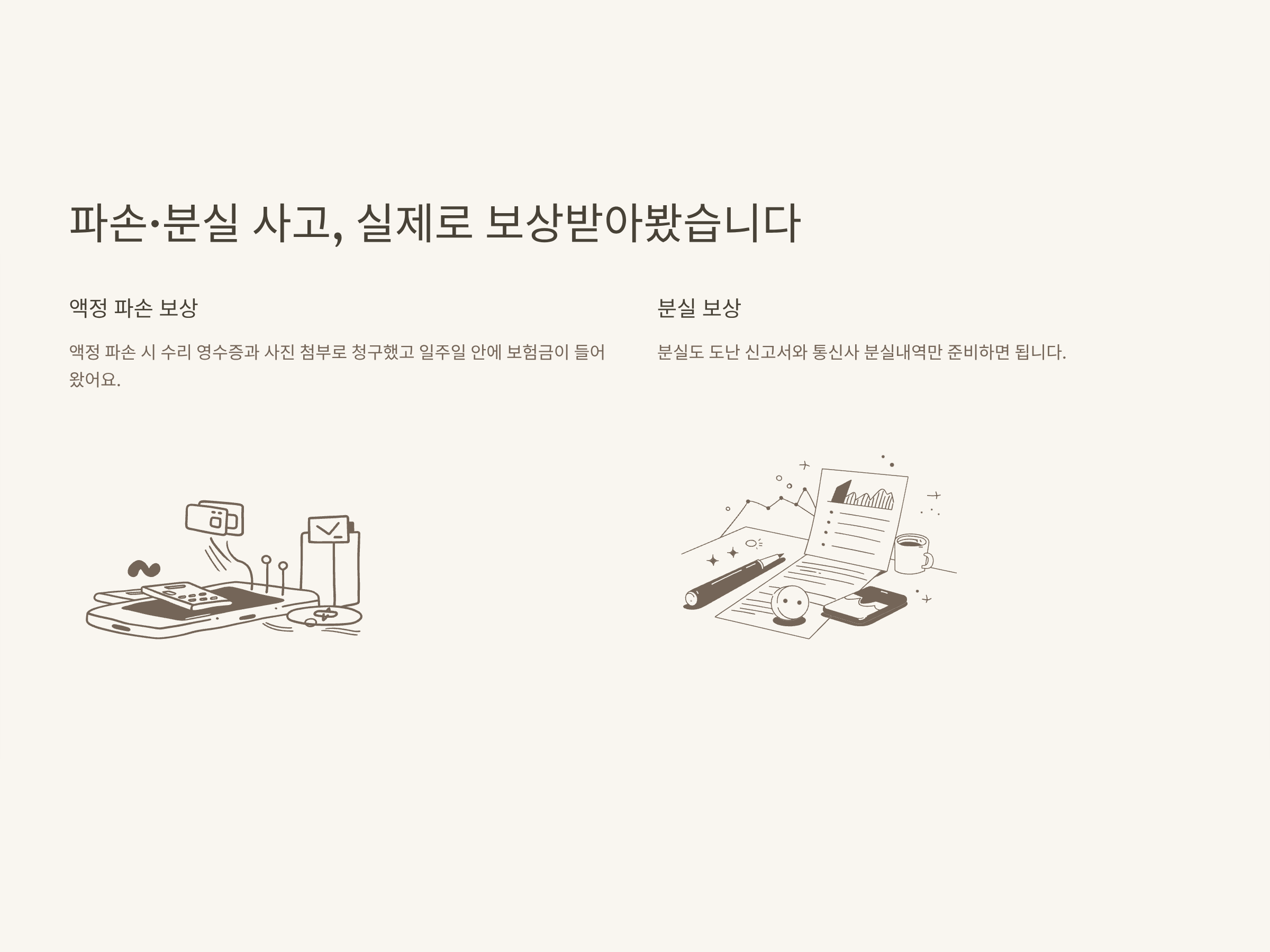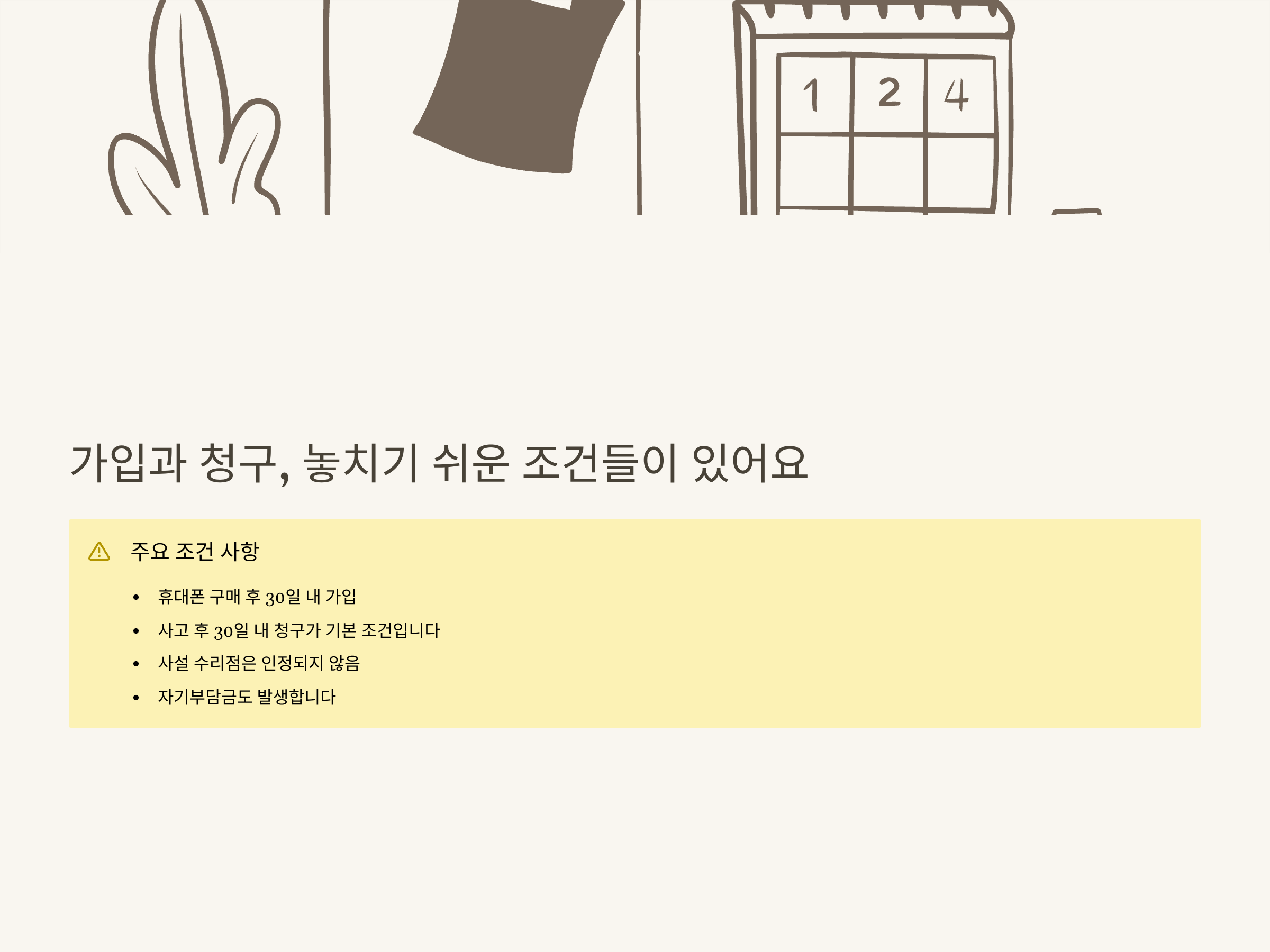 - 스마트폰 파손, 분실, 도난 등 폭넓은 보장