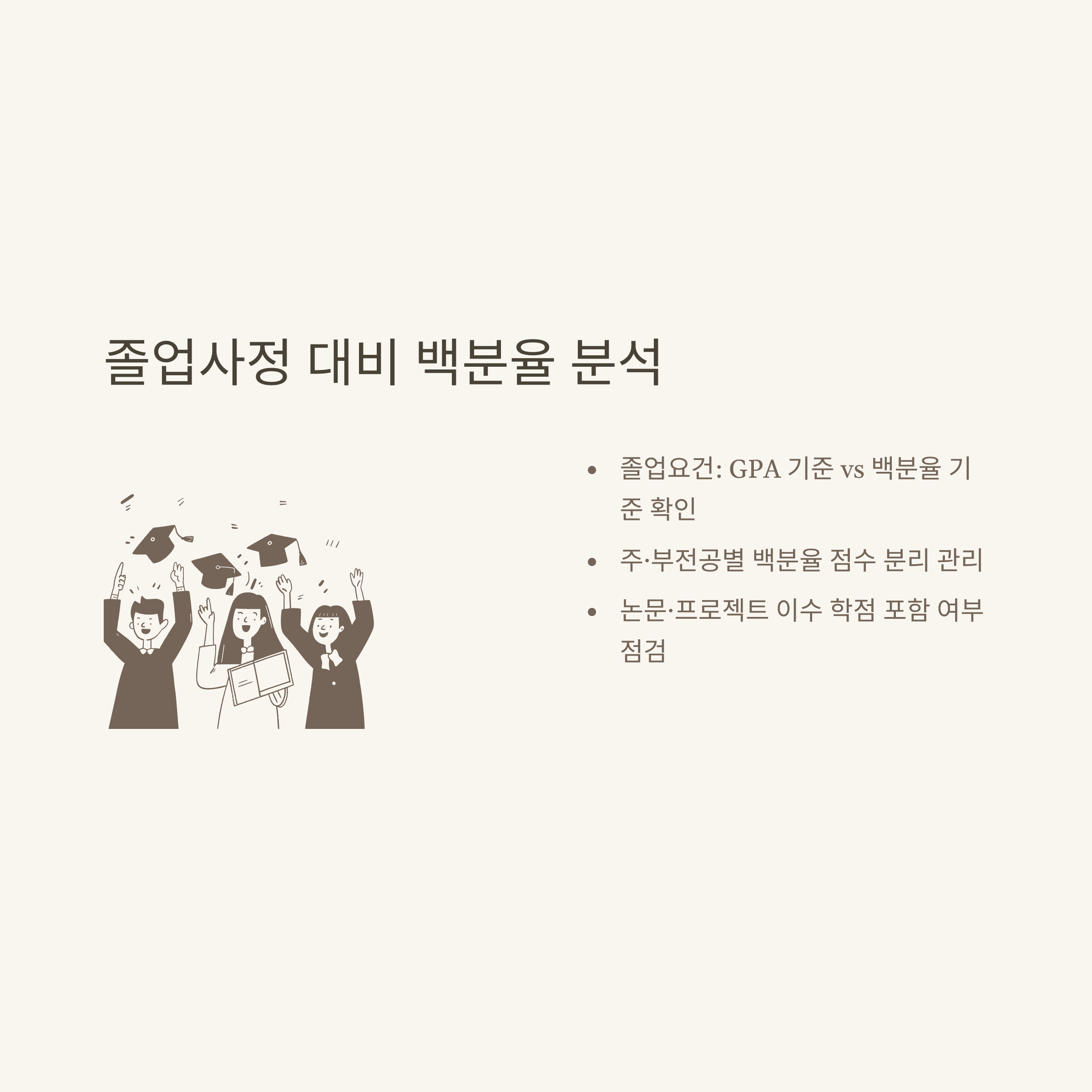 - 졸업요건이 GPA 기준인지 백분율인지 확인 필수