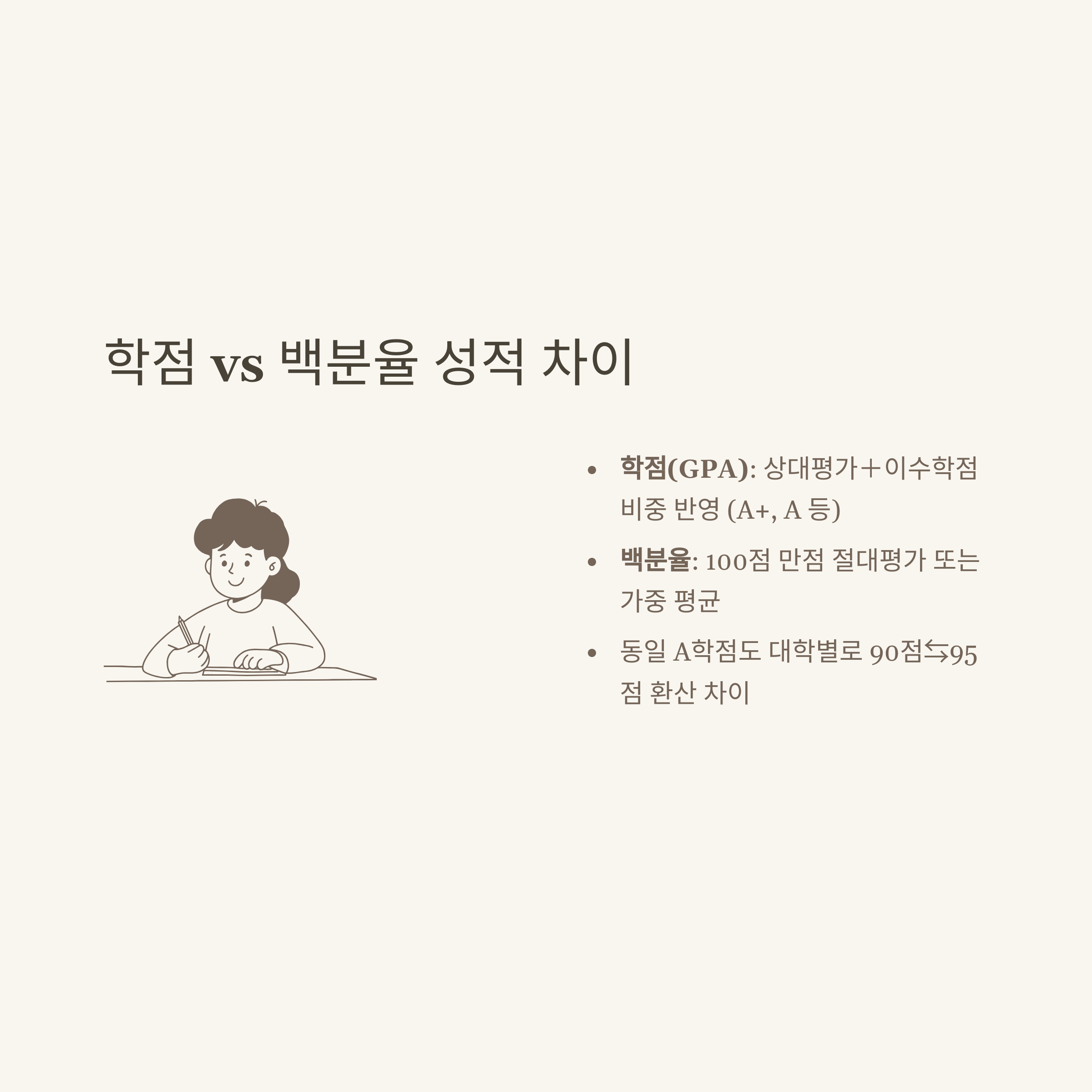 예를 들어, 평균 GPA는 3.3인데 백분율로 환산하면 82.5점이라면, 일부 대학이나 외부기관에서는 85점 이상 요건에 미달될 수 있어요. 저는 그래서 학기 말마다 백분율 환산 점수도 함께 관리하고 있어요.