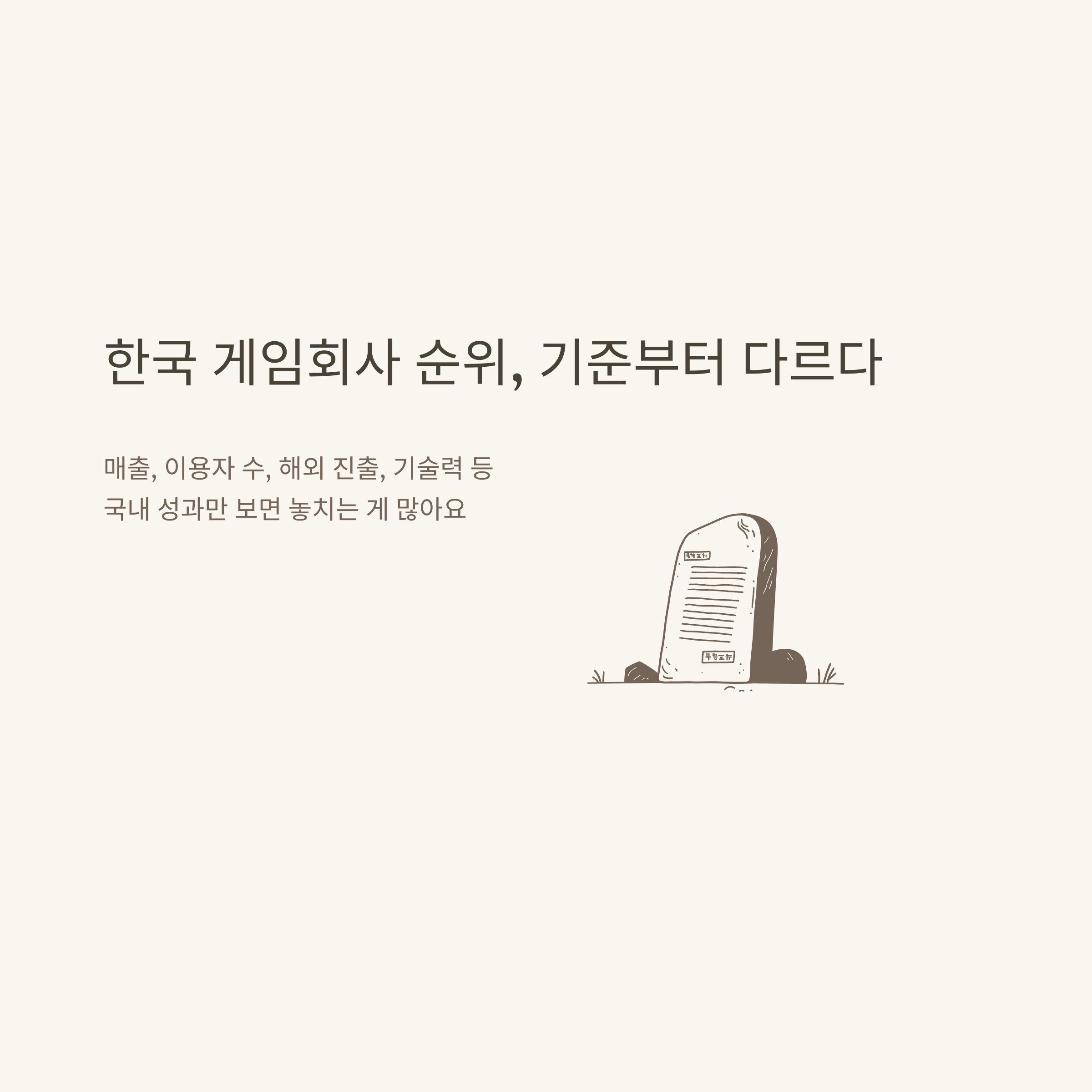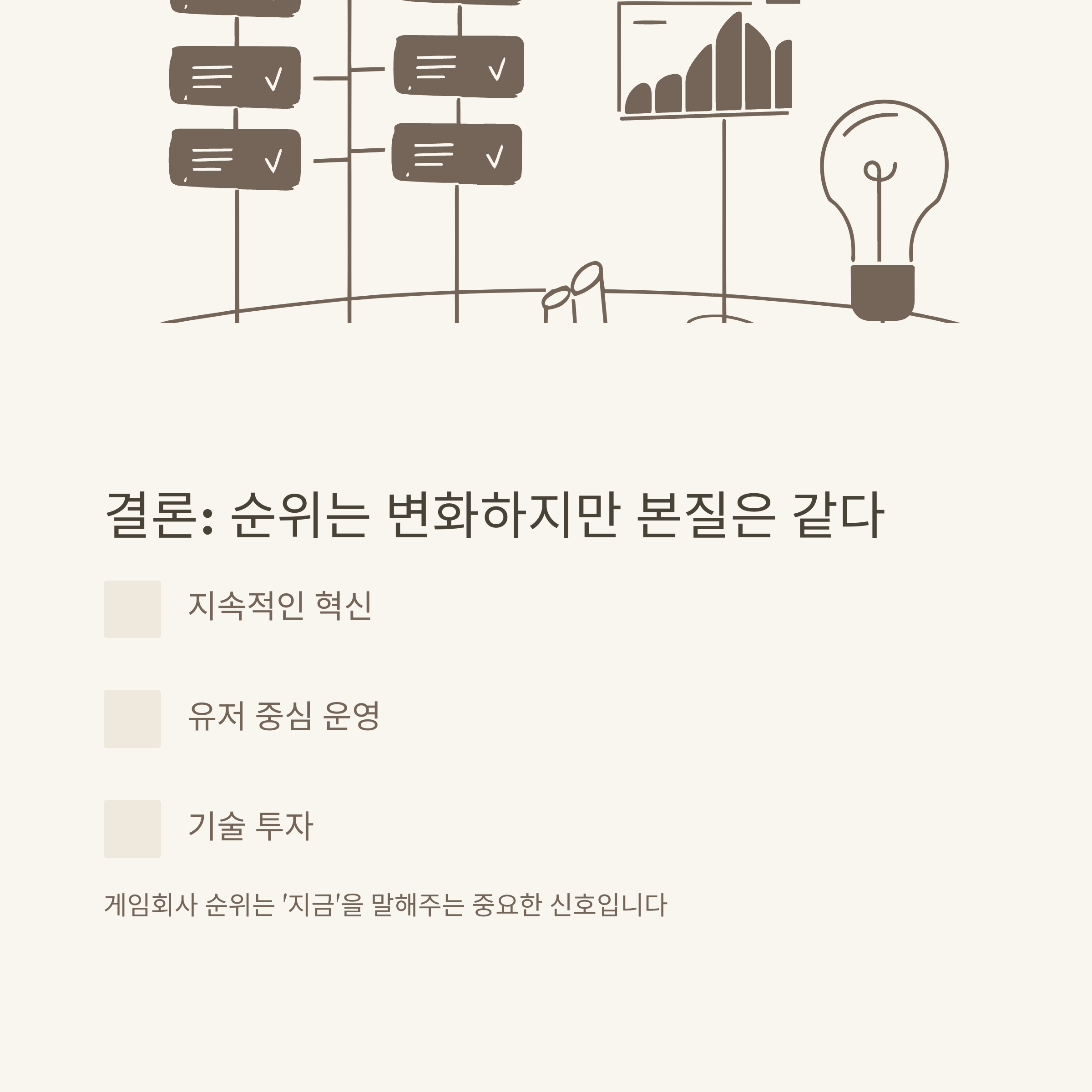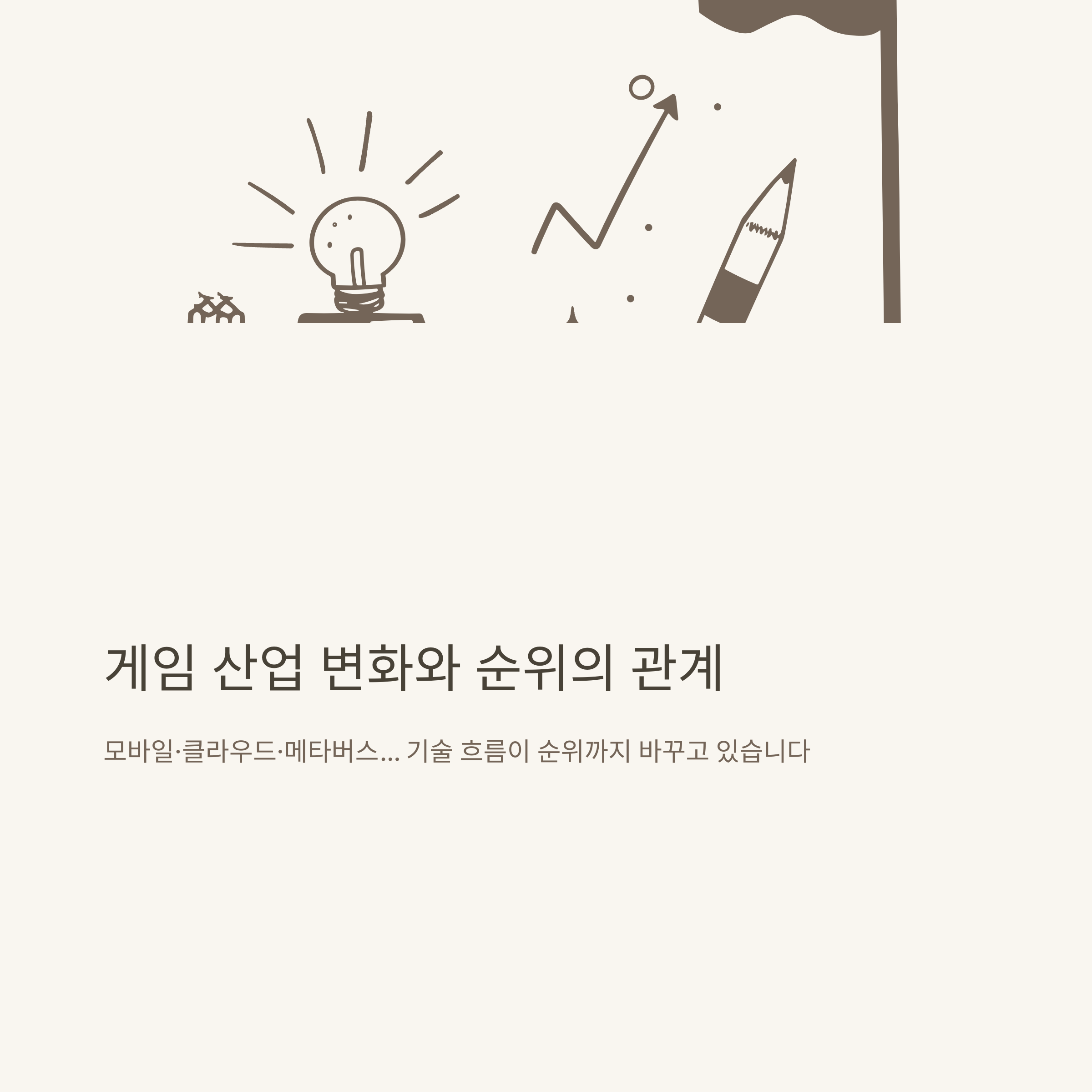 실제로 저는 한 게임회사가 신기술을 도입해 유저 경험을 크게 개선한 것을 보고 해당 회사 순위가 크게 오른 것을 목격한 적 있습니다. 그래서 단순 숫자보다 질적 성장도 반드시 체크해야 한다고 생각합니다.