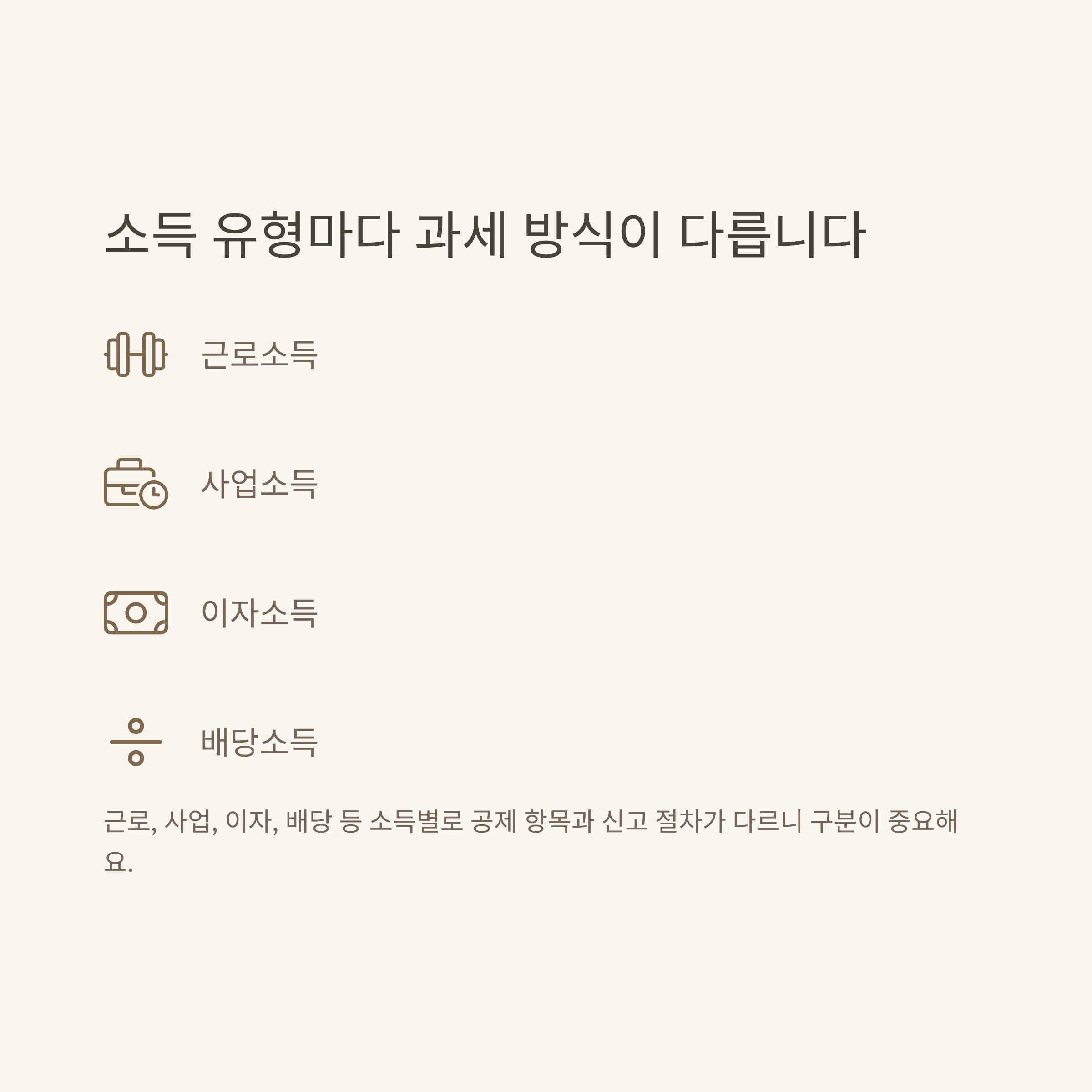 소득종류별 과세 방식 비교: 사업·근로·이자·배당