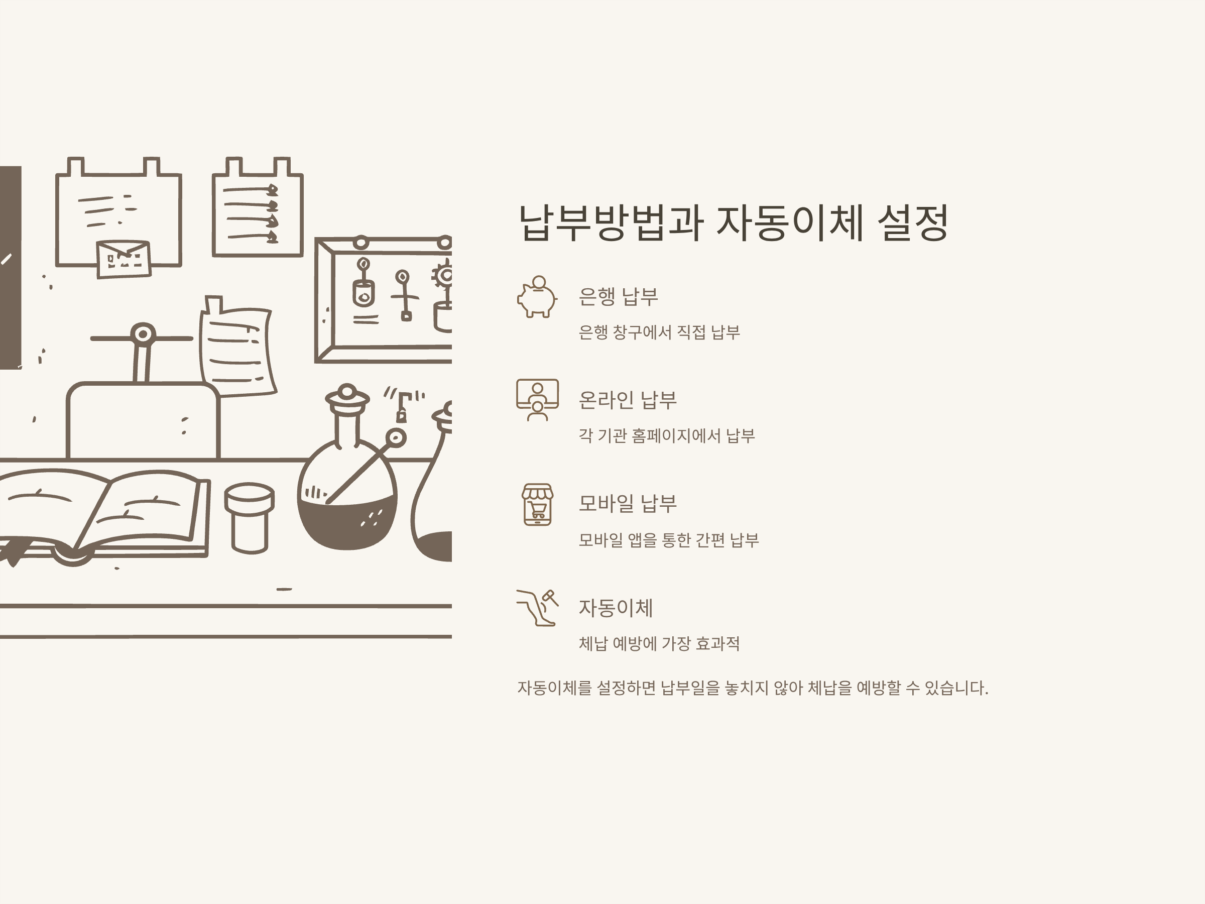 저는 개인사업자 시절 은행 계좌에서 자동이체로 설정해 두었는데, 덕분에 체납 걱정을 줄였습니다. 다만, 자동이체도 계좌 잔액이 부족하면 실패하므로, 납부일 하루 전에는 꼭 잔액을 확인하는 습관이 필요합니다.